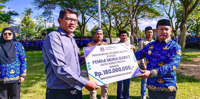 Bantuan dengan total sebesar Rp180 juta ini diserahkan secara simbolis kepada Bupati Muna Barat, La Ode Darwin pada momentum Upacara Hari Kesadaran Nasional (HKN) 17 November 2025 di Lapangan Kantor Bupati Mubar. Penyerahan dilakukan melalui Bank Sultra Cabang Kambara.
