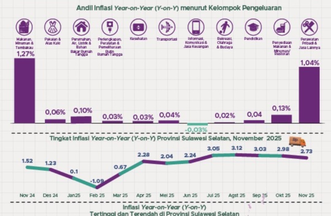 Inflasi Sulsel November Sentuh 2,73%, Kelompok Perawatan Pribadi Picu Lonjakan Harga