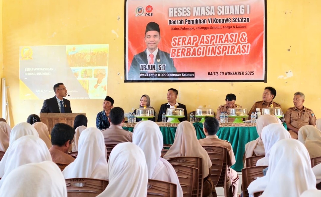 PENASULTRAID, KONAWE SELATAN – Dalam upaya memastikan para pelajar memiliki wawasan yang memadai sebelum menentukan perguruan tinggi pilihan, Wakil Ketua Dewan Perwakilan Rakyat Daerah (DPRD) Konawe Selatan (Konsel), Arjun menginisiasi kegiatan edukasi kampus di SMA Negeri 15 Konawe Selatan pada 10 November 2025.