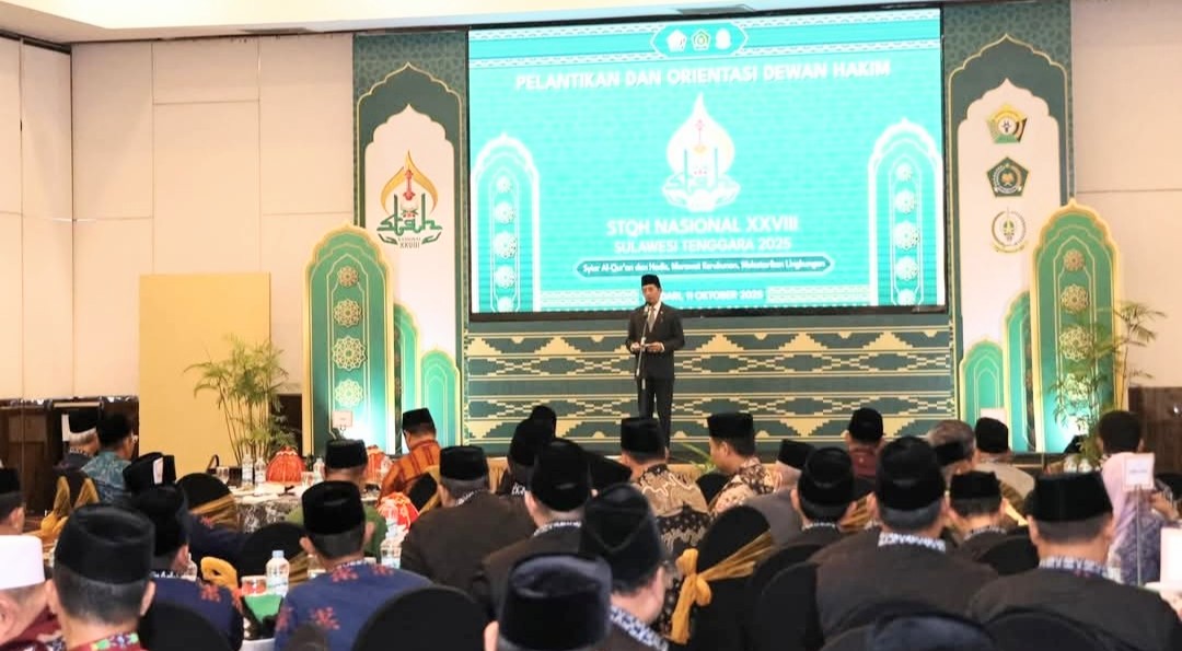 Hal tersebut diungkapkan Nasaruddin dalam sambutannya pada kegiatan pelantikan Dewan Hakim dan Dewan Pengawas STQH Nasional XXVIII di salah satu hotel ternama di Kota Kendari, Sabtu 11 Oktober 2025.