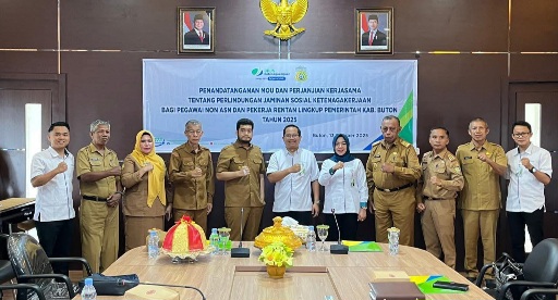Perjanjian kerja sama ini merupakan bentuk komitmen Pemkab Buton dalam memberikan perlindungan dan kepastian jaminan sosial bagi seluruh tenaga kerja, khususnya pegawai non-ASN serta pekerja rentan di lingkungan Pemkab Buton.