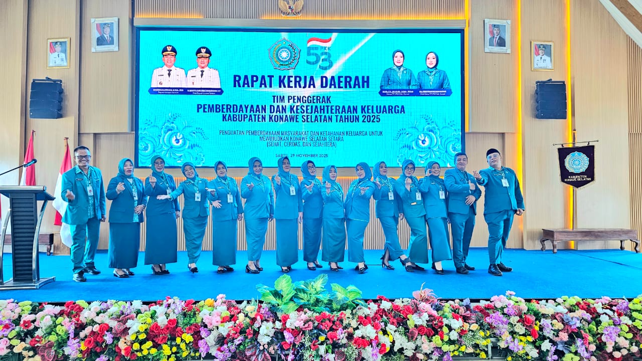 PENASULTRAID, KONAWE SELATAN – Pemerintah Kabupaten (Pemkab) Konawe Selatan (Konsel) bersama Tim Penggerak PKK sukses menggelar peringatan Hari Kesatuan Gerak (HKG) PKK ke-53 dan Rapat Kerja Daerah (Rakerda) PKK di Auditorium Lantai 3 Kantor Bupati Konsel pada Sabtu 29 November 2025.